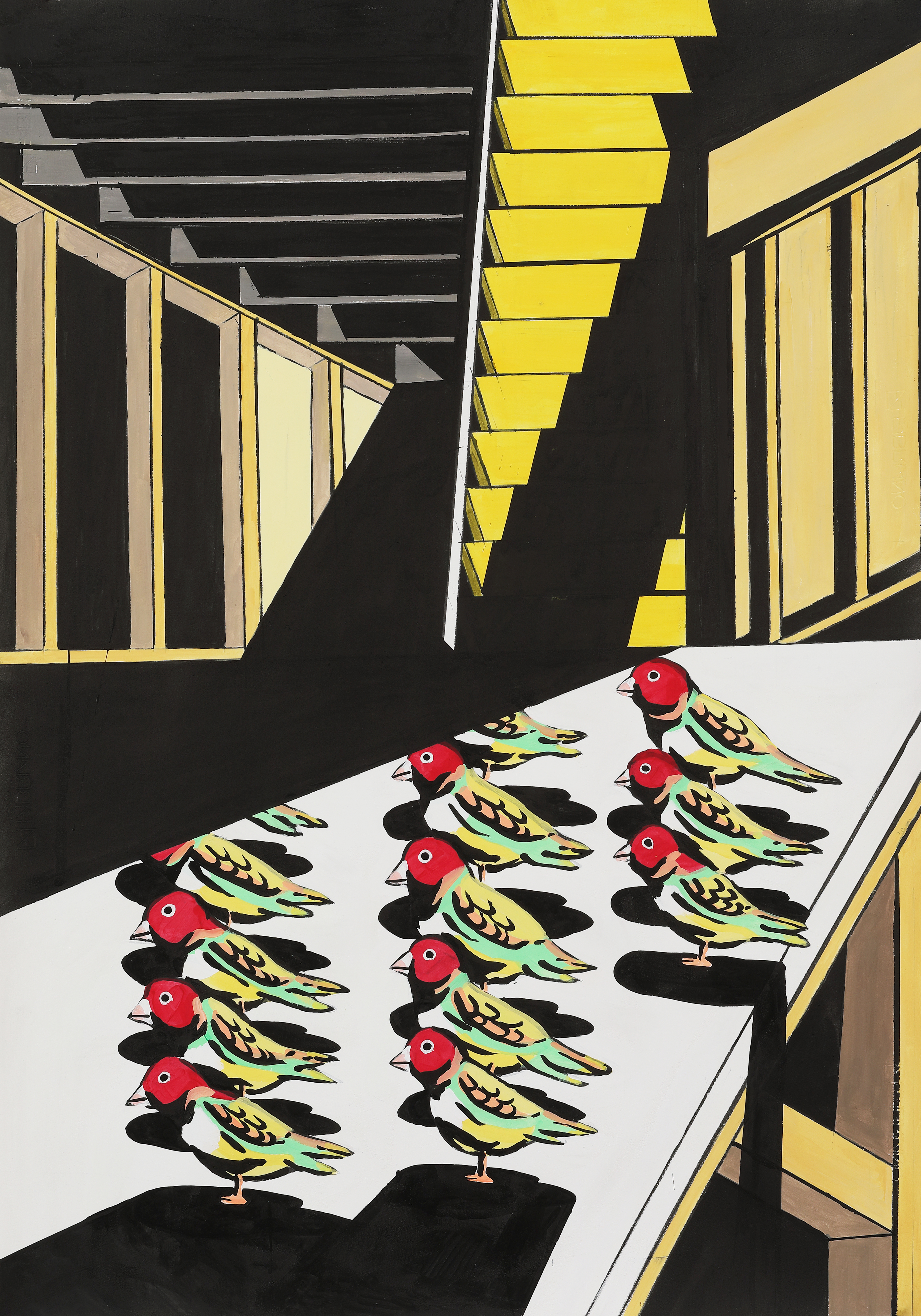 100cm x 70cm. Acrylic paint, ink, water-based paint on paper