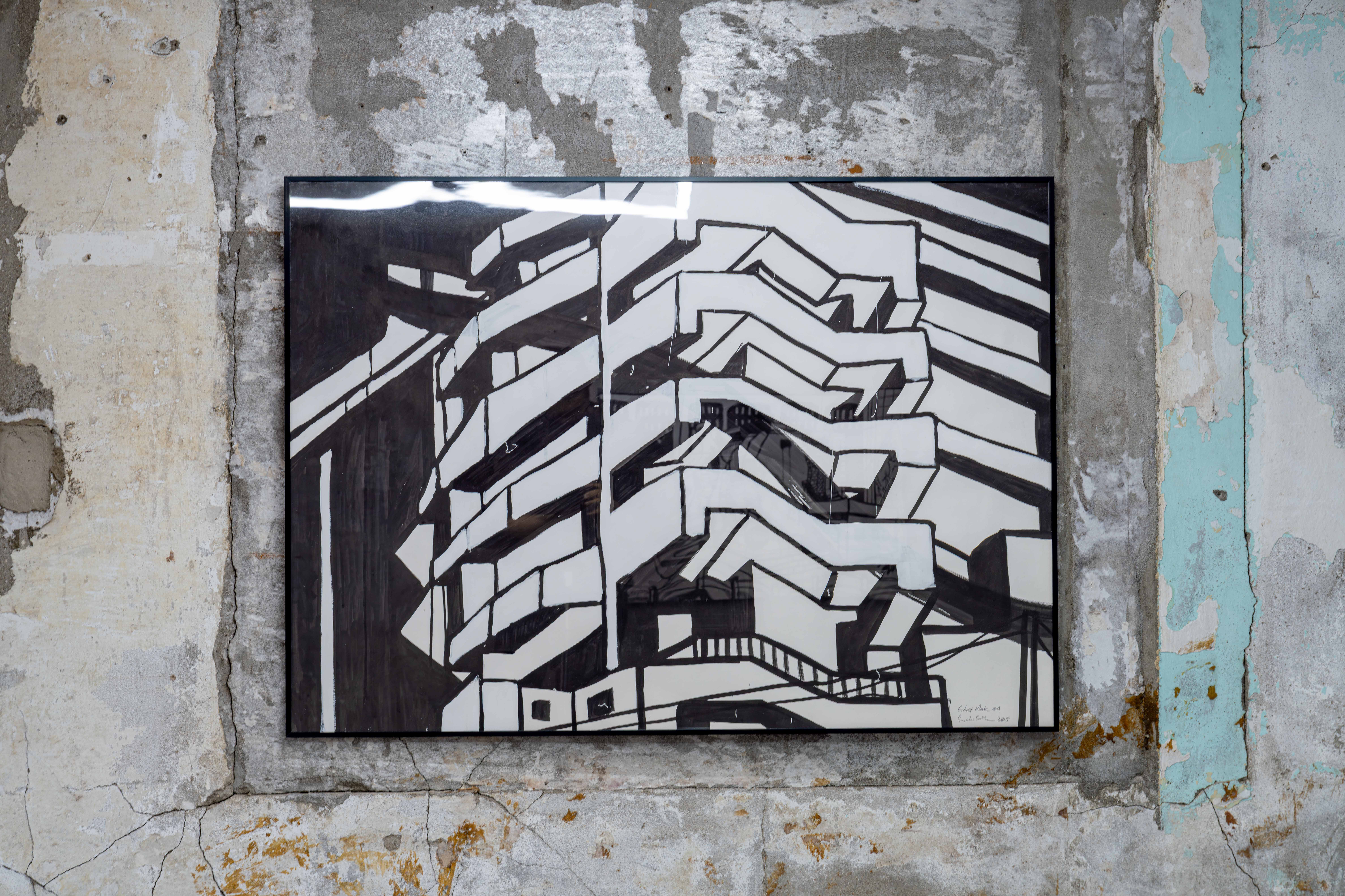 78.8cm x 109.1cm. Acrylic paint, ink, water-based paint on canvas